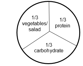 The examples below illustrate how you can divide your dinner plate to help guide appropriate portion control. If you are looking to lose weight, opting for a smaller sized portion of carbohydrate at meal times can be useful (image on the right, below).