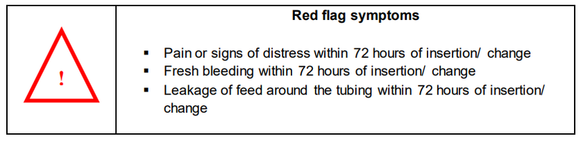 - It is not necessary to check the position of the tube prior to feeding via it unless you are concerned that the tube does not have its normal appearance/ may have dislodged.
